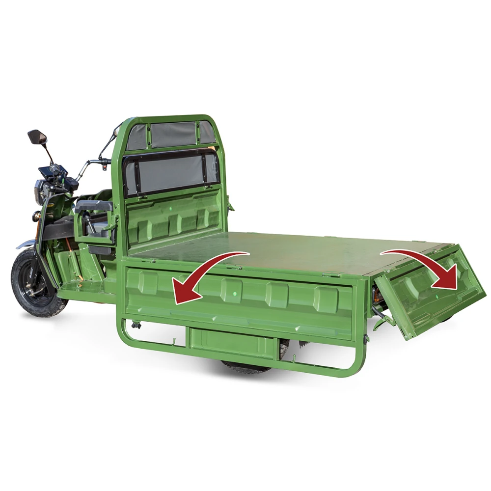Грузовой электротрицикл Rutrike Маяк 1600 60V1000W зеленого цвета - это надежное и эффективное транспортное средство для перевозки грузов. Его мощность, грузоподъемность и барабанные тормоза делают его отличным решением для различных бизнес-потребностей.