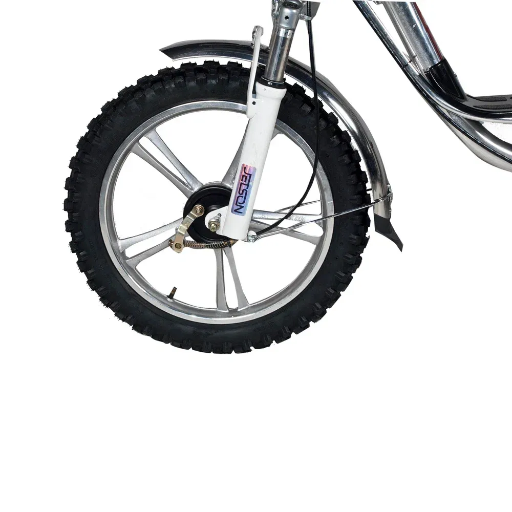 Мощность электровелосипеда составляет 500 Вт, что позволяет развить скорость до 50 км/час и преодолеть до 50 км на одной подзарядке. Современный дизайн электровелосипеда напоминает скутер, надежный и безопасный. Характеристики тс допускают эксплуатацию модели женским и мужским полом. Удобные вместительные сиденья, широкая подставка для ног предрасполагают к комфортному отдыху.